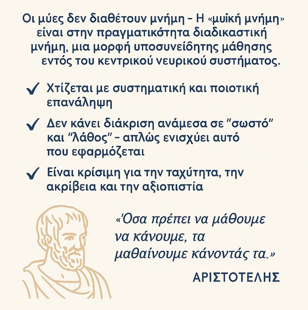 Ο σωστός όρος είναι "διαδικαστική μνήμη" (procedural memory) και δεν είναι κάτι καινούργιο. Οι αρχαίοι Έλληνες φιλόσοφοι και παιδαγωγοί την περιέγραψαν αιώνες πριν την ονομάσει η σύγχρονη επιστήμη.